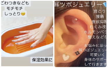 ・ハンドパラフィンパック 1000円 ・耳つぼジュエリー♦6粒 1000円 ・ヘッドスパ10分 1000円